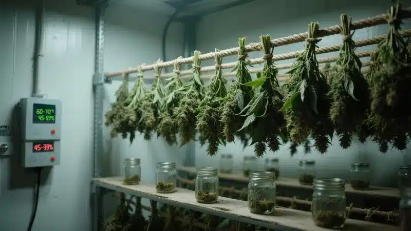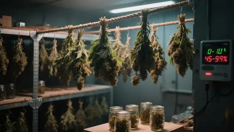 It’s not ideal to dry cannabis in a damp environment. High humidity levels heighten the risk of mold, which can ruin your entire crop. If you find yourself in a particularly humid area, ensure proper ventilation and consider integrating a dehumidifier into your setup to manage moisture levels effectively.